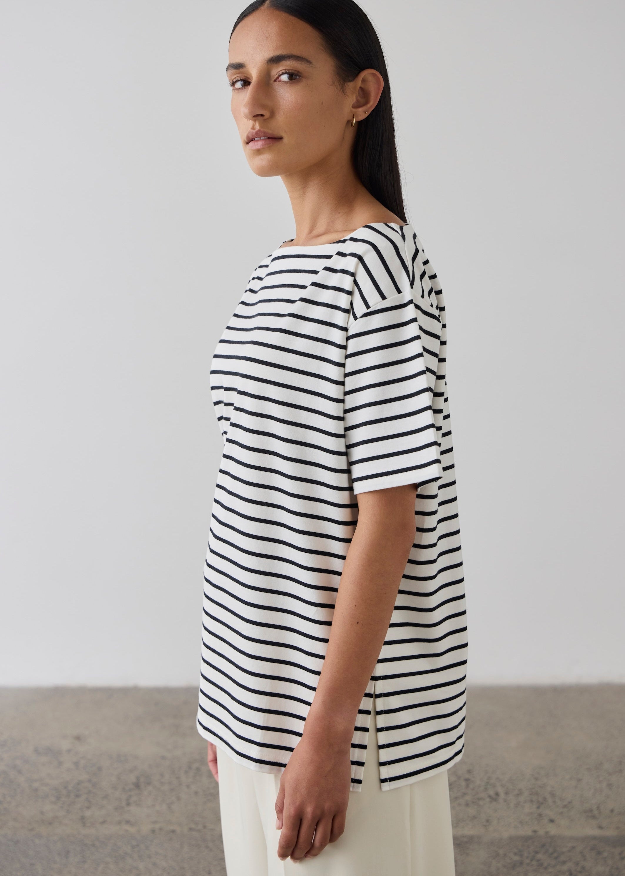 Striped Short Sleeve T-shirt - Black / Ecru